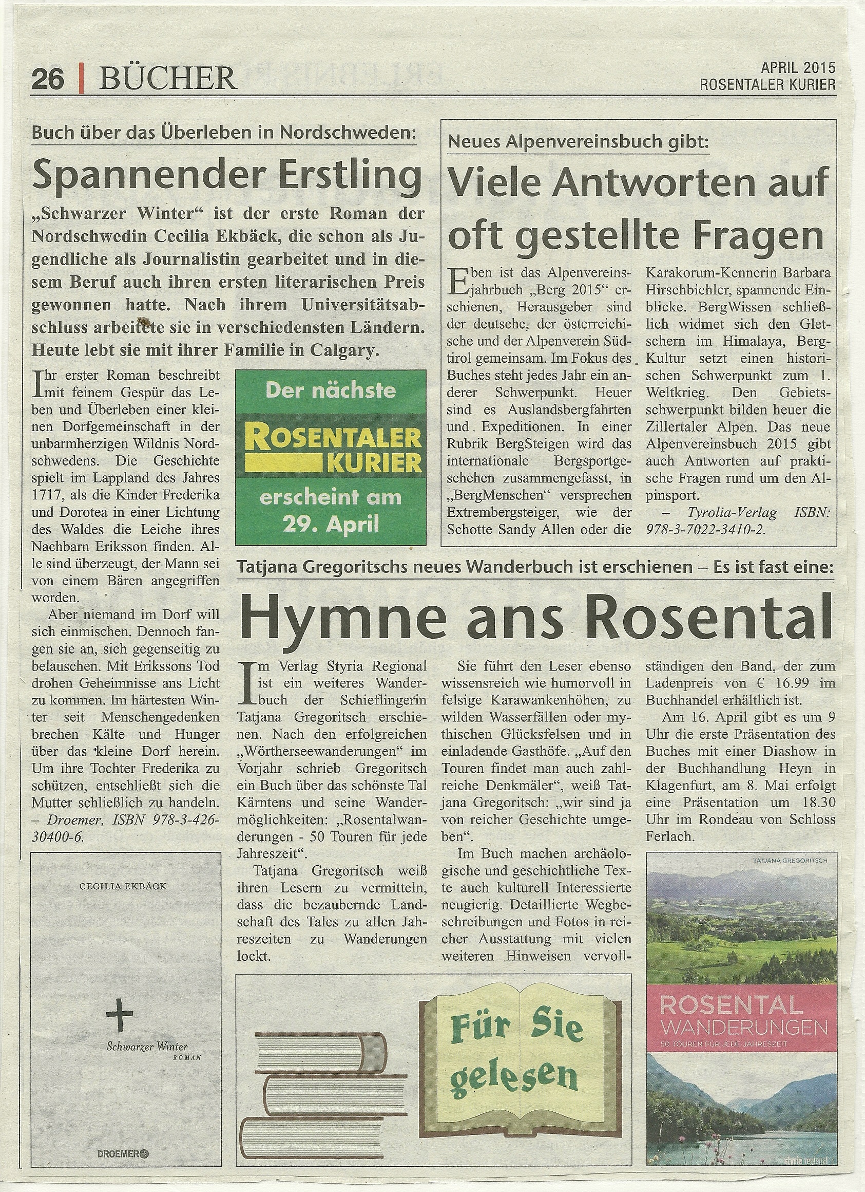Für das Magazin „Rosentaler Kurier“, Herausgeber Walter Perkounig verstarb 2024, verfasste ich monatlich Tourenartikel, eine Auswahl hier.